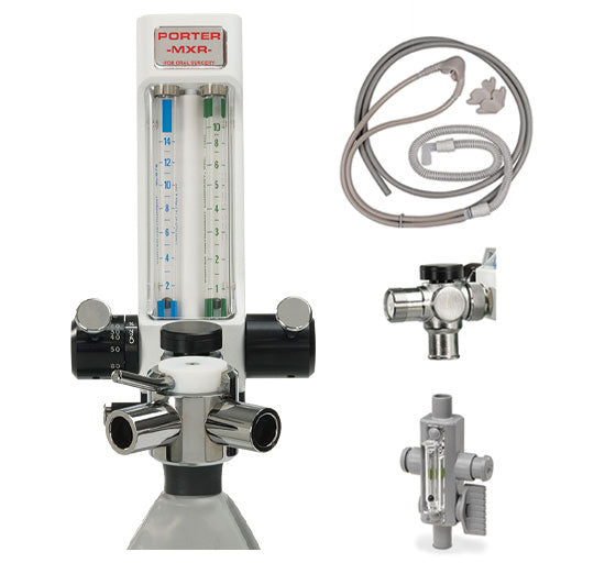 Includes OS Flowmeter, 5155-1 Breathing Circuit (double mask nitrous scavenger) with In-Line Vacuum Control to allow for visual monitoring of vacuum flow, and Threaded Bag Tee (2200-OS Accessory Package not included).